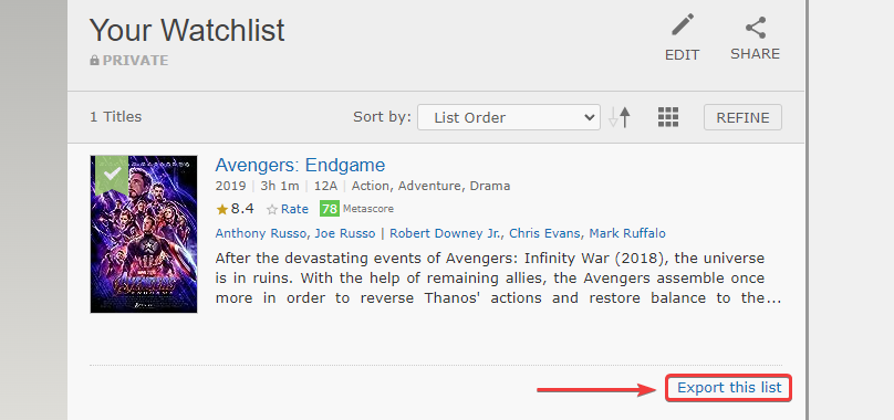 * **Export Your Watchlist:** Scroll to the bottom of your watchlist and click "Export this list." This will download the CSV file containing your watch history.
