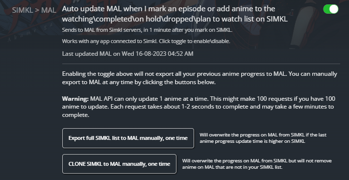 * **Auto Update on SIMKL:** Auto update Simkl on schedule when you update your MAL . You can also use the manual update feature as well, which is also a extra backup feature.