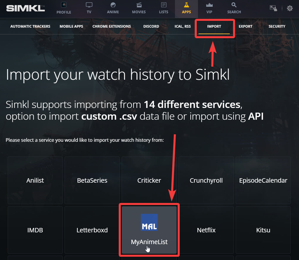 ## Import From MyAnimeList to SIMKL: <https://simkl.com/apps/import/mal/>