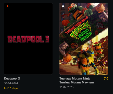 | ⚪ White    | <ul><li>New movies that are currently in Theaters</li><li>New Shows that have been just released and only have 1 episode aired.</li></ul> |
