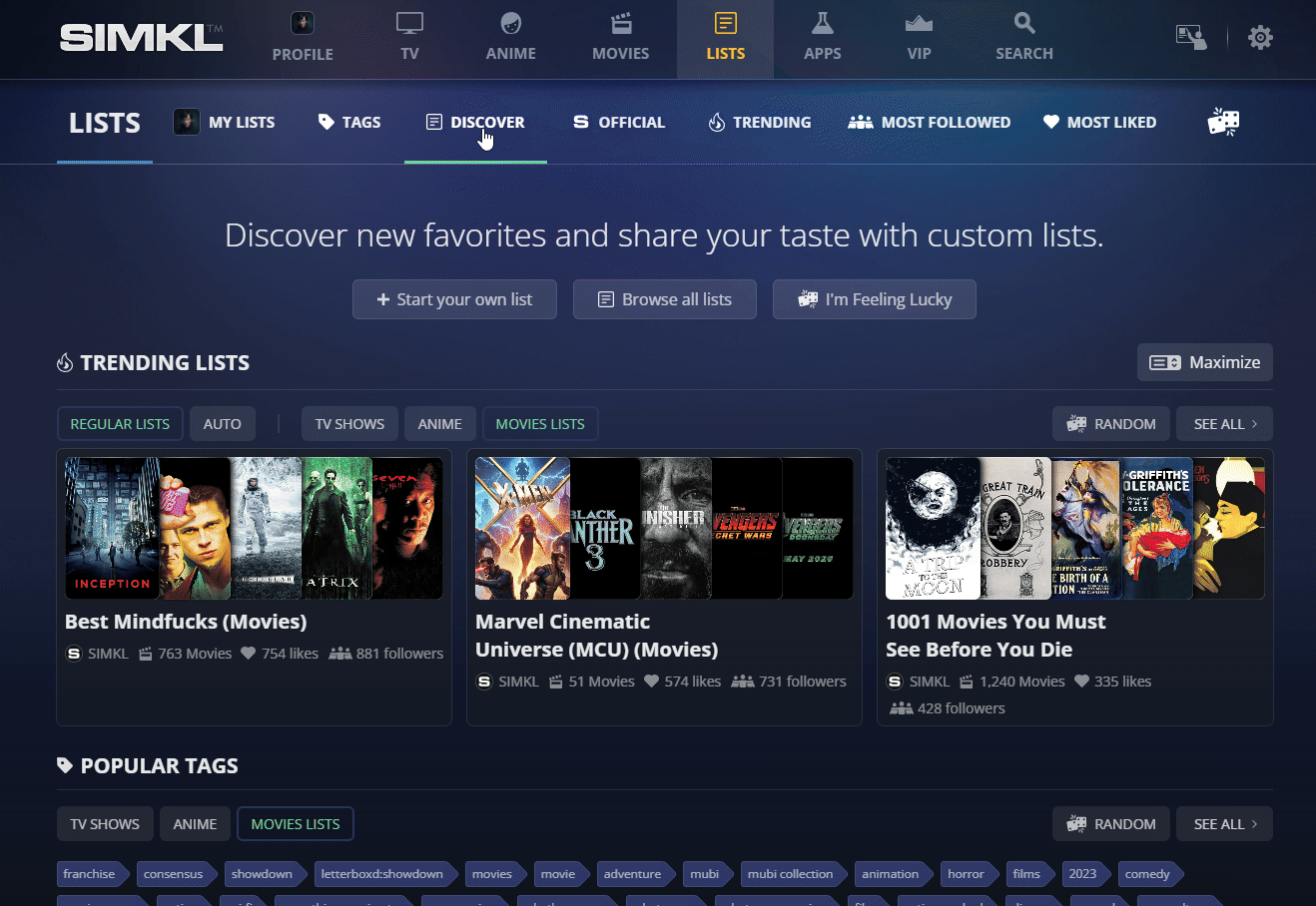 Watchlists and Custom lists are both essential features of Simkl that help members organize their TV shows, movies, and anime.