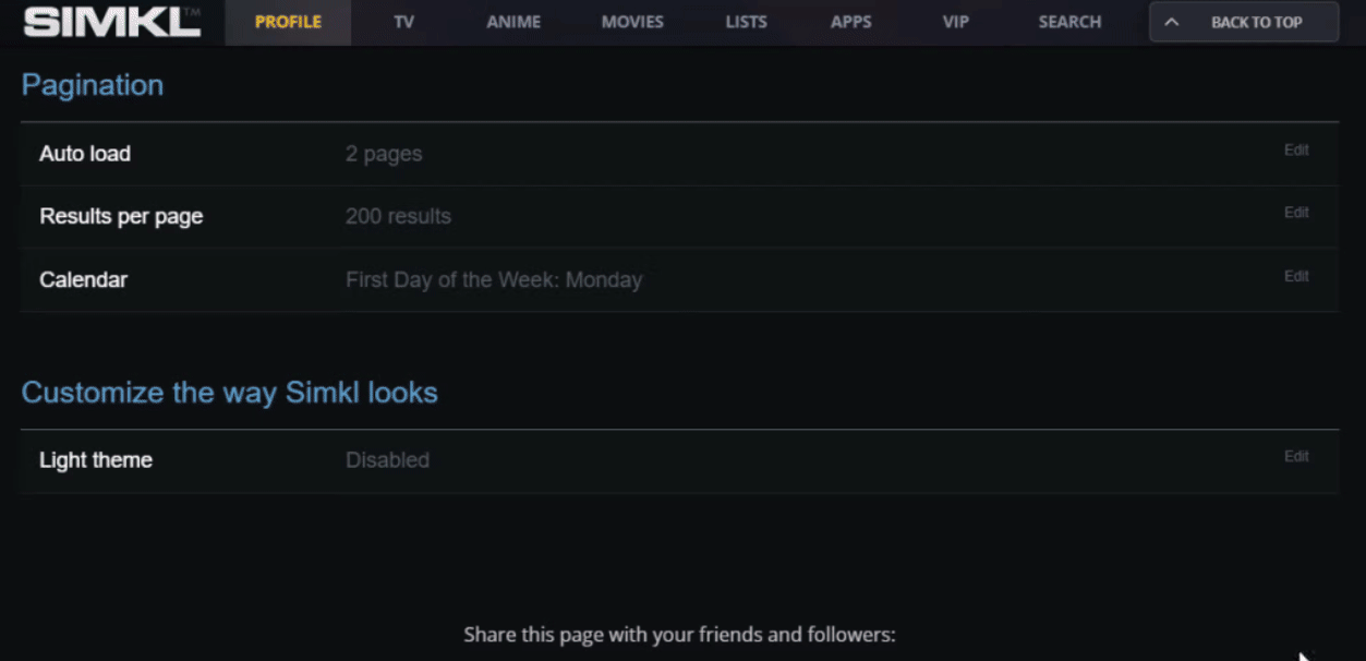 Below is a quick rundown of the basic Profile Settings you can adjust on Simkl, along with some tips on where to click and what each option does.